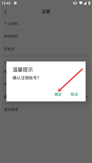 4、在彈出的溫馨提示彈窗中,點(diǎn)擊“確定”按鈕,完成賬號的注銷操作。