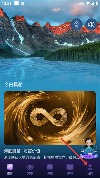 3、融合自然意象與呼吸引導(dǎo),借助山川星空等元素,幫助使用者在冥想中與自然連接,吸收清澈的生命力量。