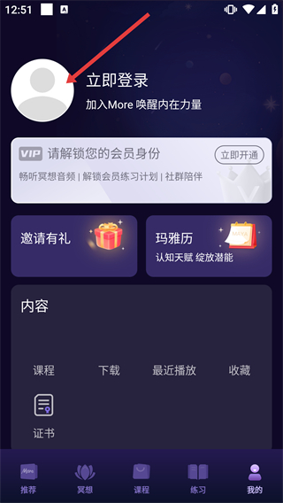3、在個(gè)人中心頁(yè)面,點(diǎn)擊“立即登錄”區(qū)域,進(jìn)入賬號(hào)登錄界面。