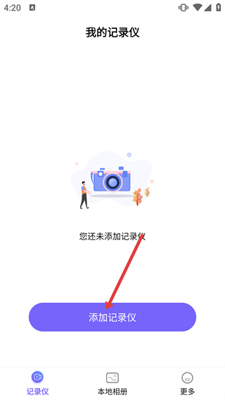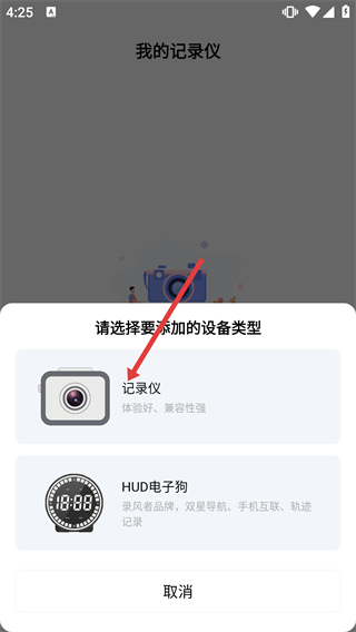 1、在“我的記錄儀”頁(yè)面,點(diǎn)擊“添加記錄儀”按鈕,進(jìn)入設(shè)備類型選擇的操作界面。