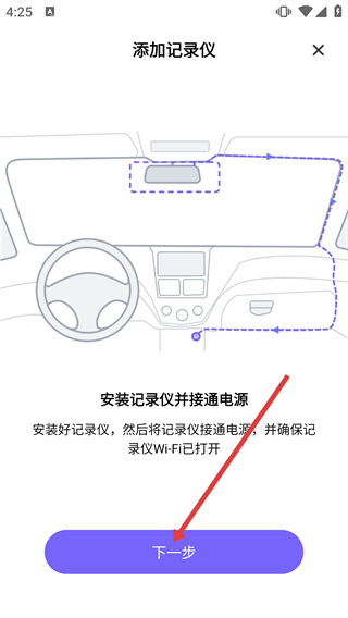 3、在添加記錄儀的步驟頁(yè)面,完成記錄儀的安裝與通電操作后,點(diǎn)擊“下一步”按鈕繼續(xù)流程。