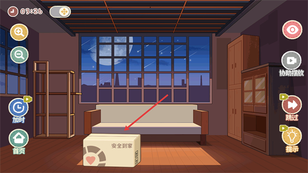3、在【流星雨落】關(guān)卡場景,點擊標有【安全到家】的紙箱,開啟收納流程。